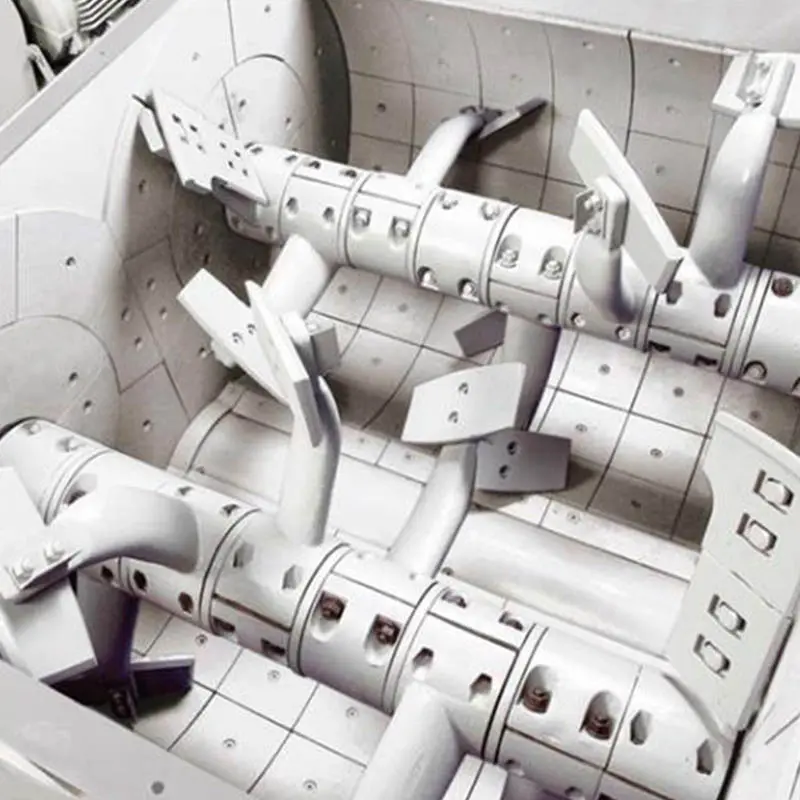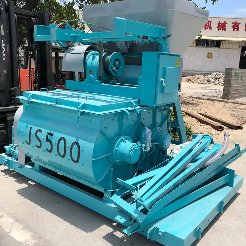 JS Compulsory Mixer ส่วนใหญ่ประกอบด้วยถังผสมที่มีรูปทรงร่องวงกลมเรียงตามแนวนอน 2 ถัง เพลาผสม 2 อันที่หมุนไปในทิศทางตรงกันข้าม และกลไกการหมุน มีการติดตั้งใบมีดผสมหลายกลุ่มบนเพลาทั้งสอง ส่วนผสมจะถูกผสมสลับกันในถังผสมสองถัง ในอีกด้านหนึ่ง ส่วนผสมที่ด้านล่างและตรงกลางของถังผสมจะหงายขึ้น และในทางกลับกัน ส่วนผสมจะถูกผลักไปข้างหน้าและข้างหลังตามแนวแกน ดังนั้นจึงสามารถผสมส่วนผสมได้อย่างรวดเร็วและสม่ำเสมอ